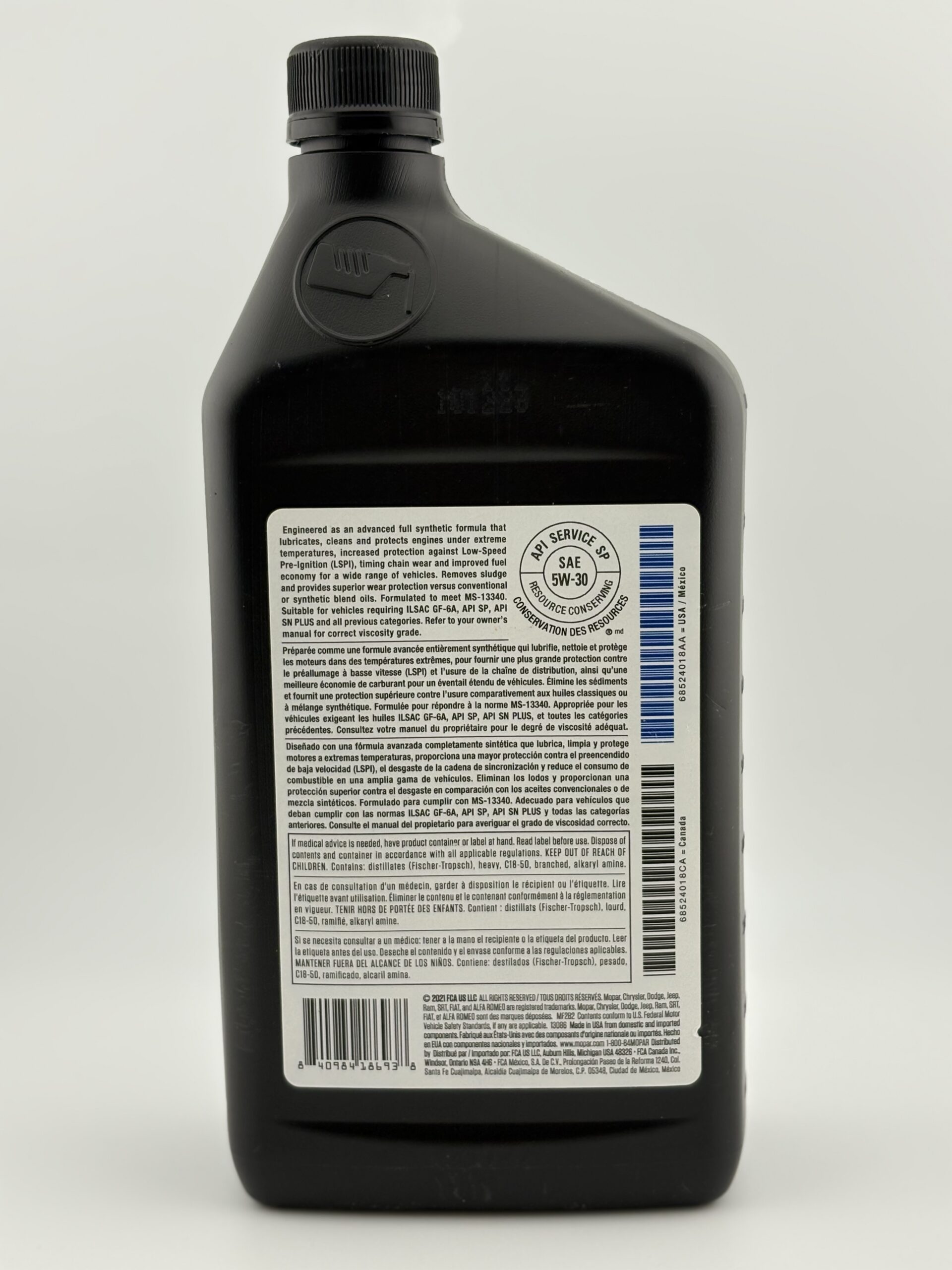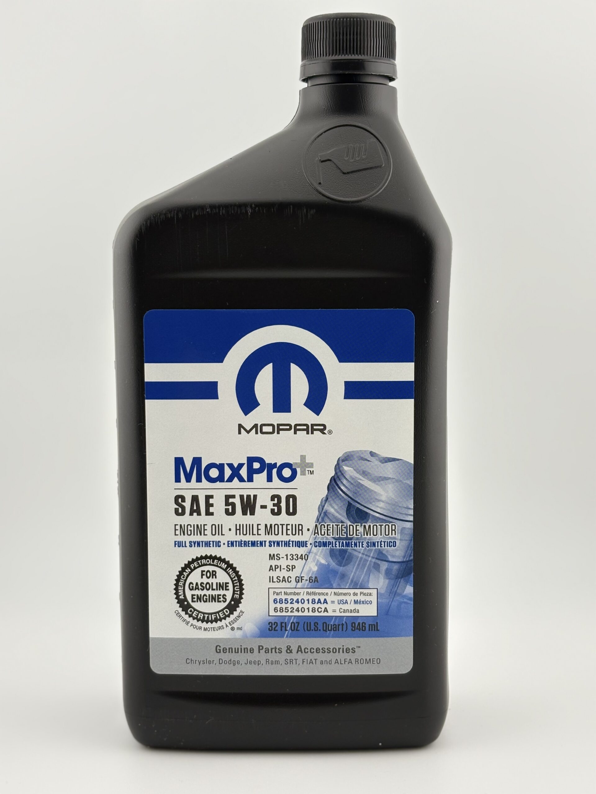 SAE 5W30 / CHRYSLER MS-13340 / MAXPRO+ / MAXPRO PLUS / API SP / SN PLUS / SN / SM / ILSAC GF-4 / GF-5 / GF-6 / GF-6A